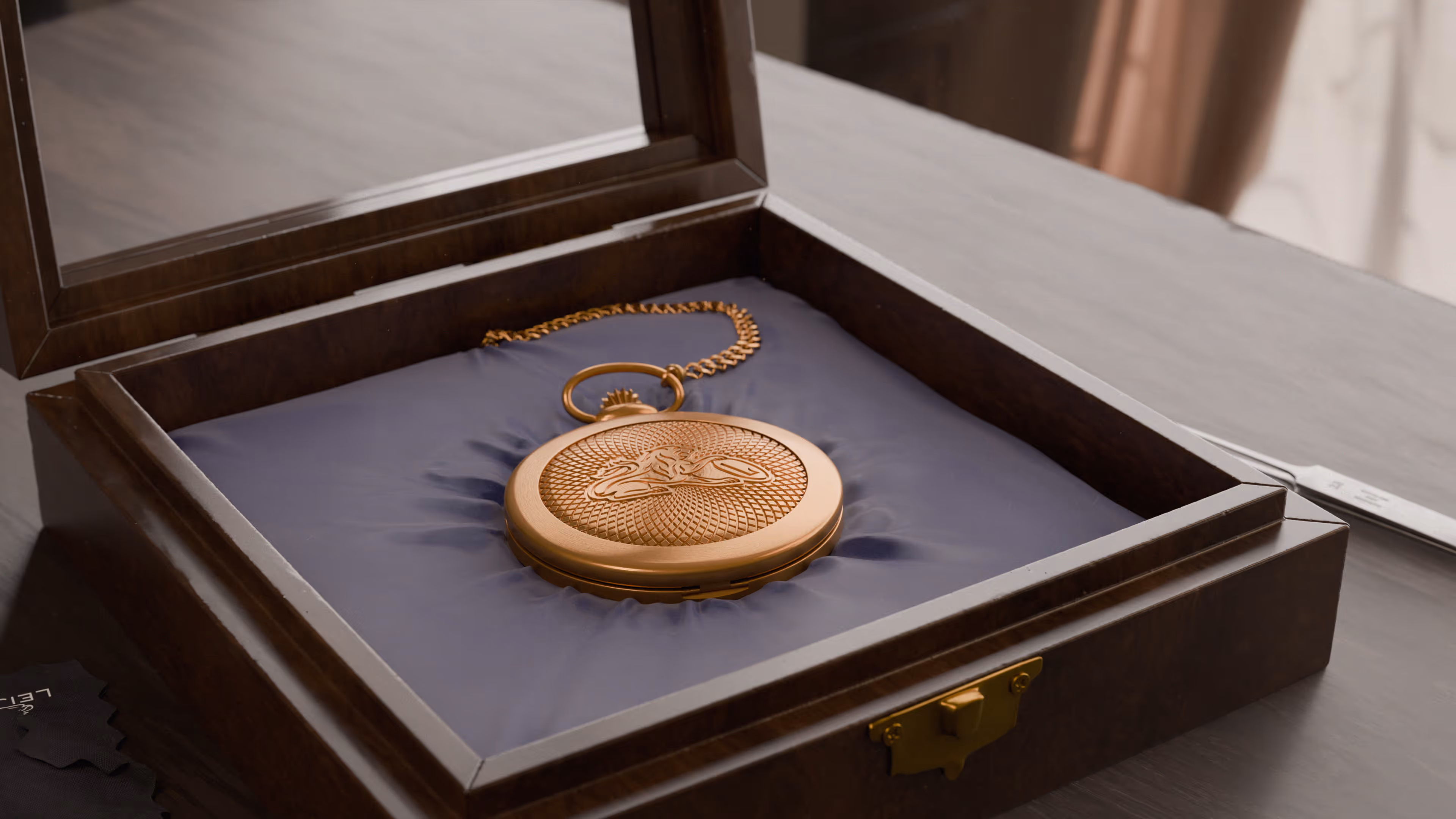 Unofficial rendering of a Leijona brand pocket watch. Modeled from reference and procedurally textured in Blender.
